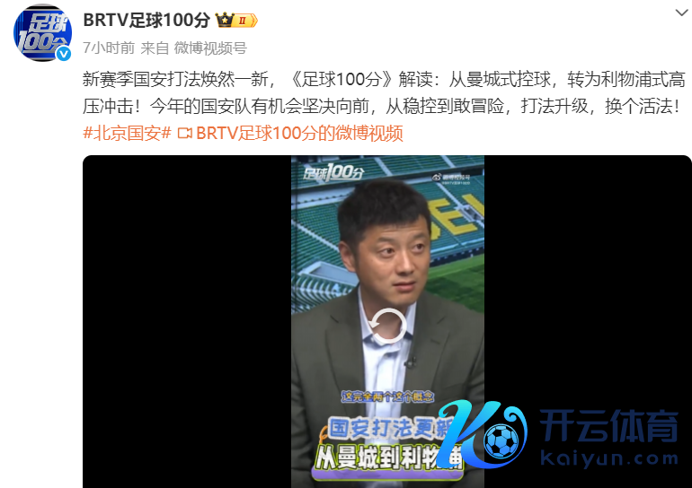 《足球100分》的官微上(上图)写着:从曼城式控球,转为利物浦式高压冲击!本年的国安队有契机矍铄上前,从稳控到敢冒险,打法升级,换个活法!